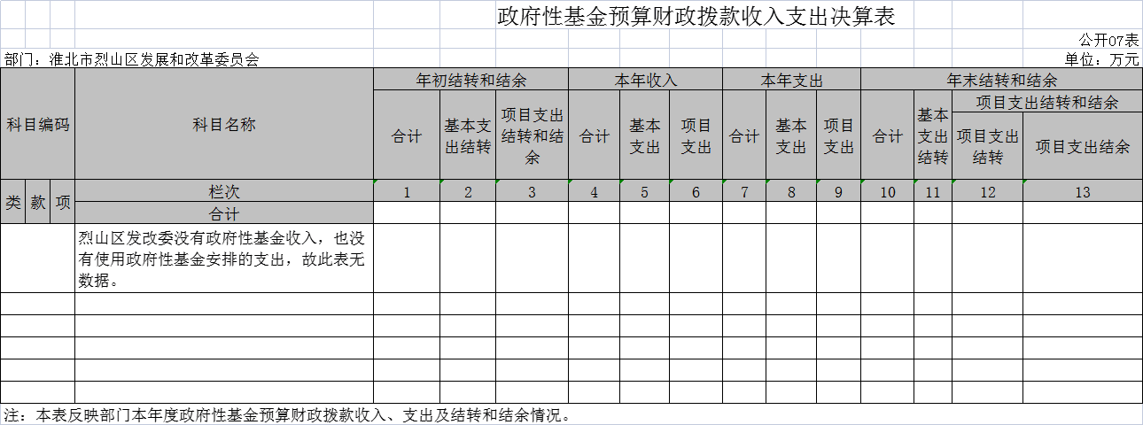 烈山区发改委2020年度政府性基金预算财政拨款收入支出决算表