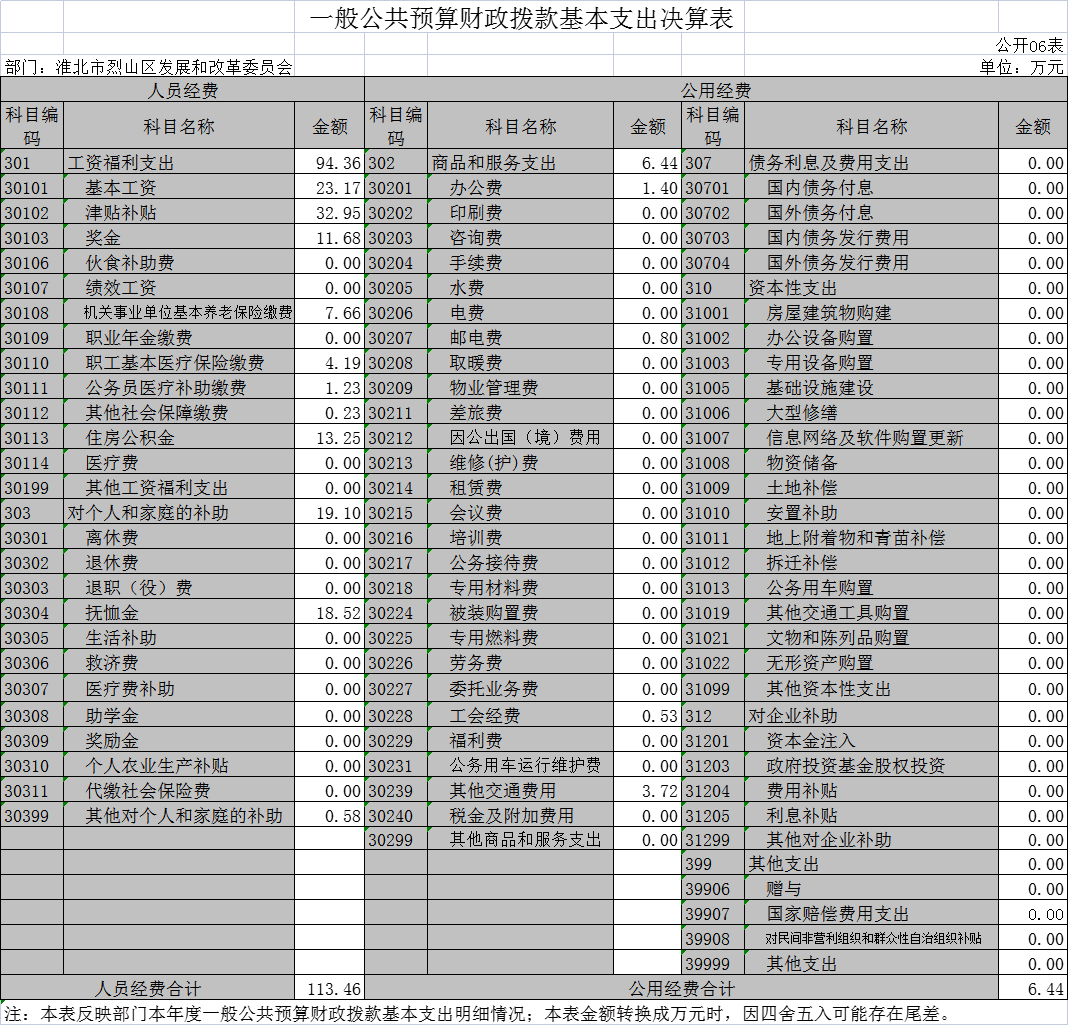 烈山区发改委2020年度一般公共预算财政拨款基本支出决算表