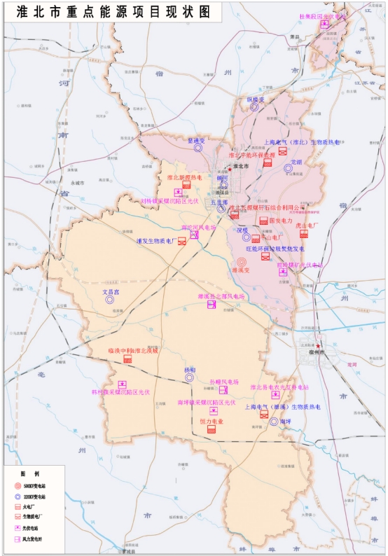 生物质能:淮北生物质工业固废热电联产项目、淮北长源生物科技有限公司年产20万吨燃料乙醇项目、旺能环保淮北垃圾发电二期项目、濉溪县大中型生物天然气、沼气项目、农林生物质热电联产项目。 |