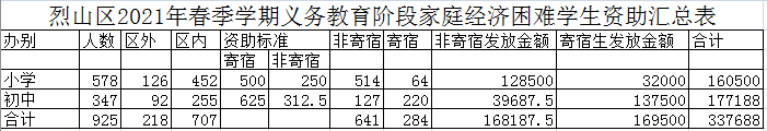 烈山区2021年春季学期义务教育阶段家庭经济困难学生资助汇总