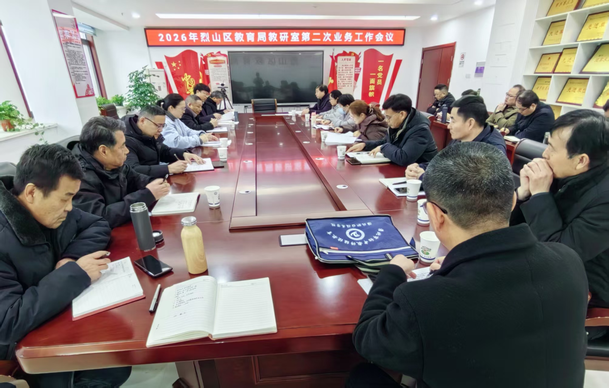 为全面落实市教育局教研室工作部署,统筹推进全区教研提质增效,3月6日上午,烈山区教育局教研室2026年第二次业务工作会议在区科创大厦九楼会议室召开。区教育局党委委员李金亿、各学科教研员、各中小学业务负责人参加会议。