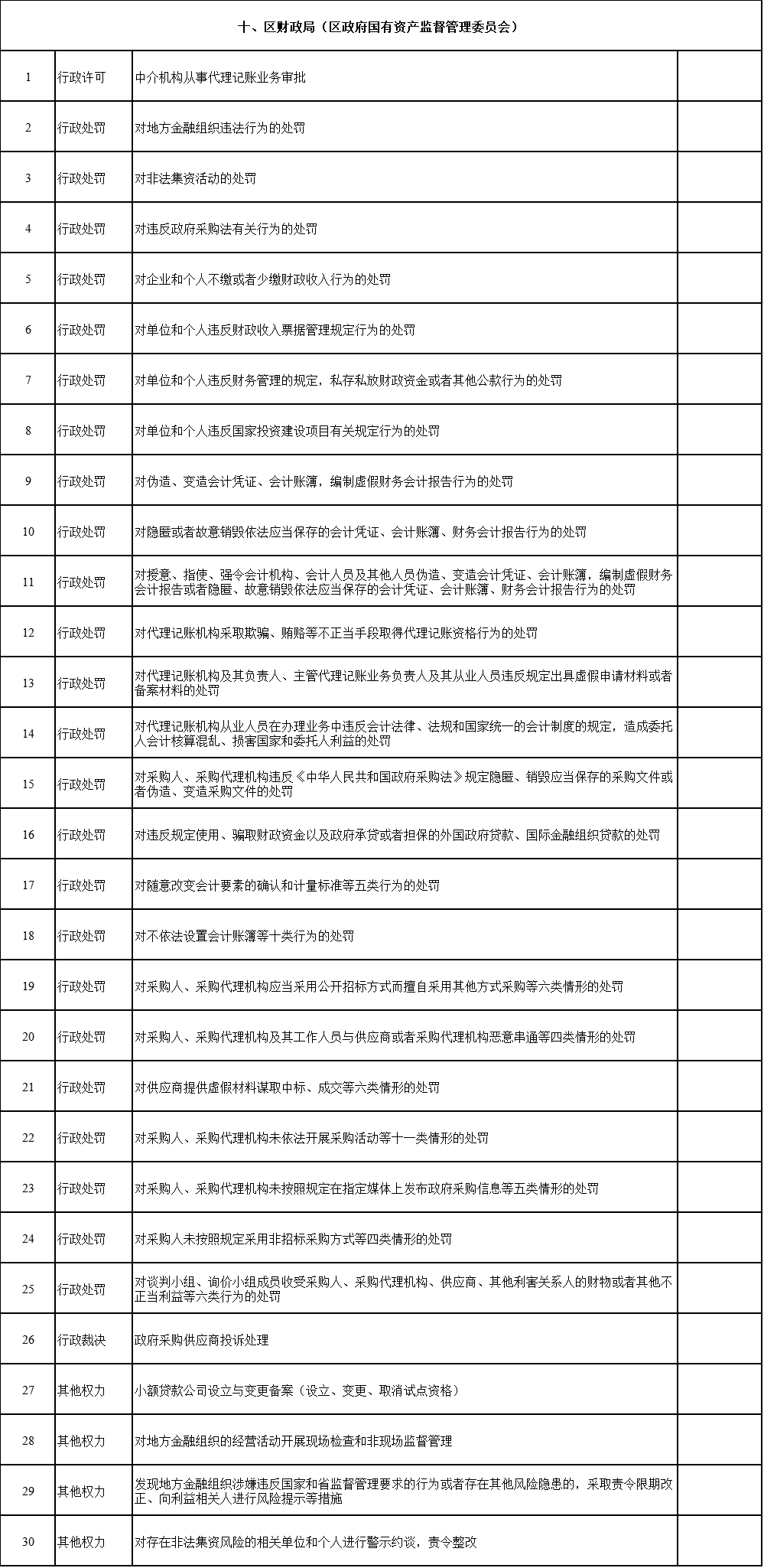 区财政局(区政府国有资产监督管理委员会、区地方金融监督管理局)权责清单(2025年版)
