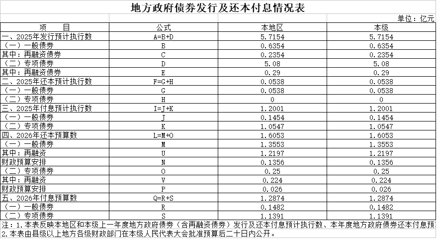 烈山区本级2025年地方政府债券发行及还本付息情况表