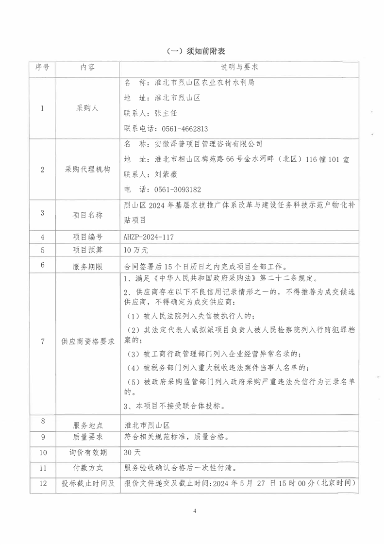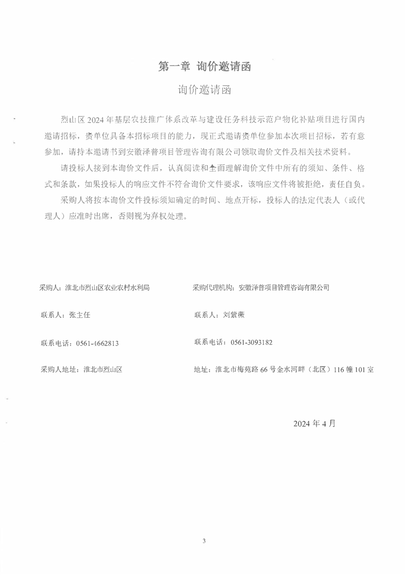 烈山区2024年基层农技推广体系改革与建设任务科技示范户物化补贴项目(邀请函)