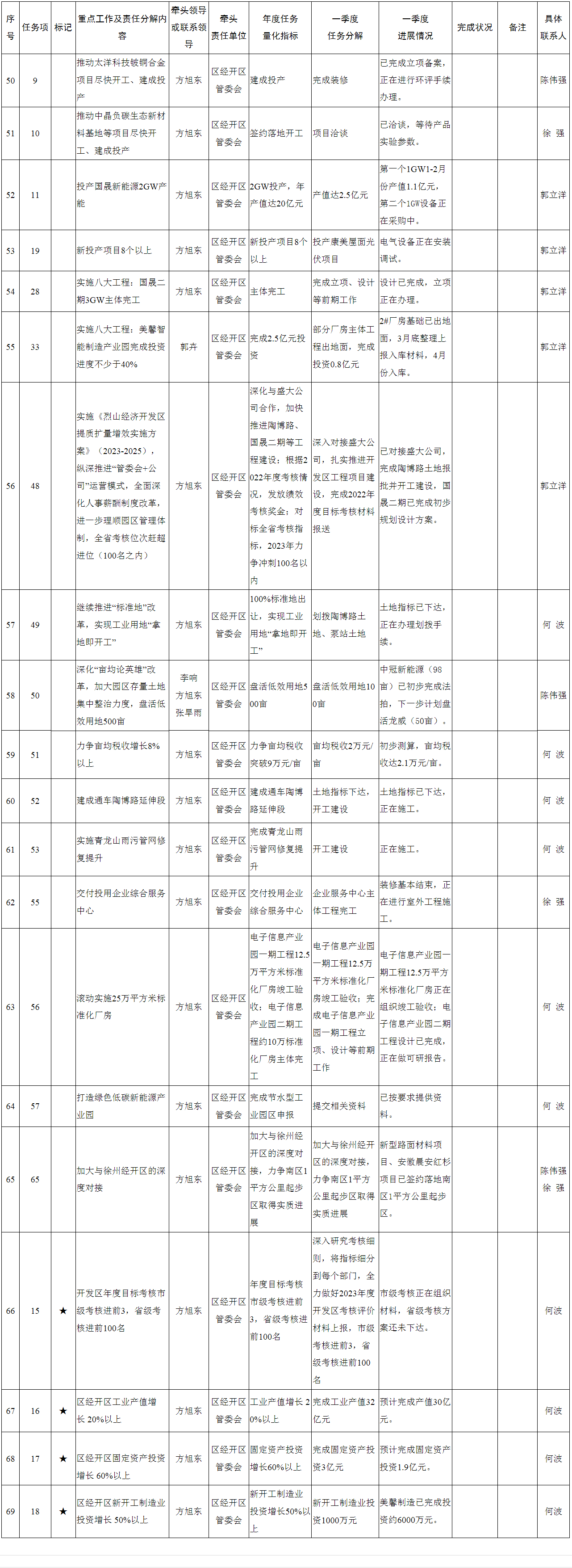 【重点工作任务分解完成情况】烈山经济开发区2023年第一季度重点工作任务完成情况