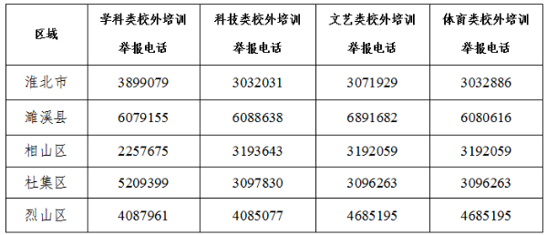 根据中央“双减”政策要求,国家法定节假日、休息日及寒暑假期间,任何机构和个人均不得开展学科类培训。淮北市所有学科类培训机构办学许可证已全部注销,凡组织面向中小学生开展学科培训的机构均属非法机构。请您和孩子拒绝参加以“一对一”“一对多”“家庭教师”“高端家政”“AI自习室”等隐形变异方式开展的学科类培训;拒绝参加在职中小学教师违规开展的有偿补课活动;拒绝参加以游学、研学、冬令营、思维素养、国学素养等名义违规开展的学科类培训活动。隐形变异学科类培训存在教学人员身份不明、培训场地隐蔽、消防要求不达标、安全隐患严重等问题,不仅培训质量难以保证,安全管理更是隐患重重,请您主动抵制违规培训和各种形式的诱导、广告,以免上当受骗。