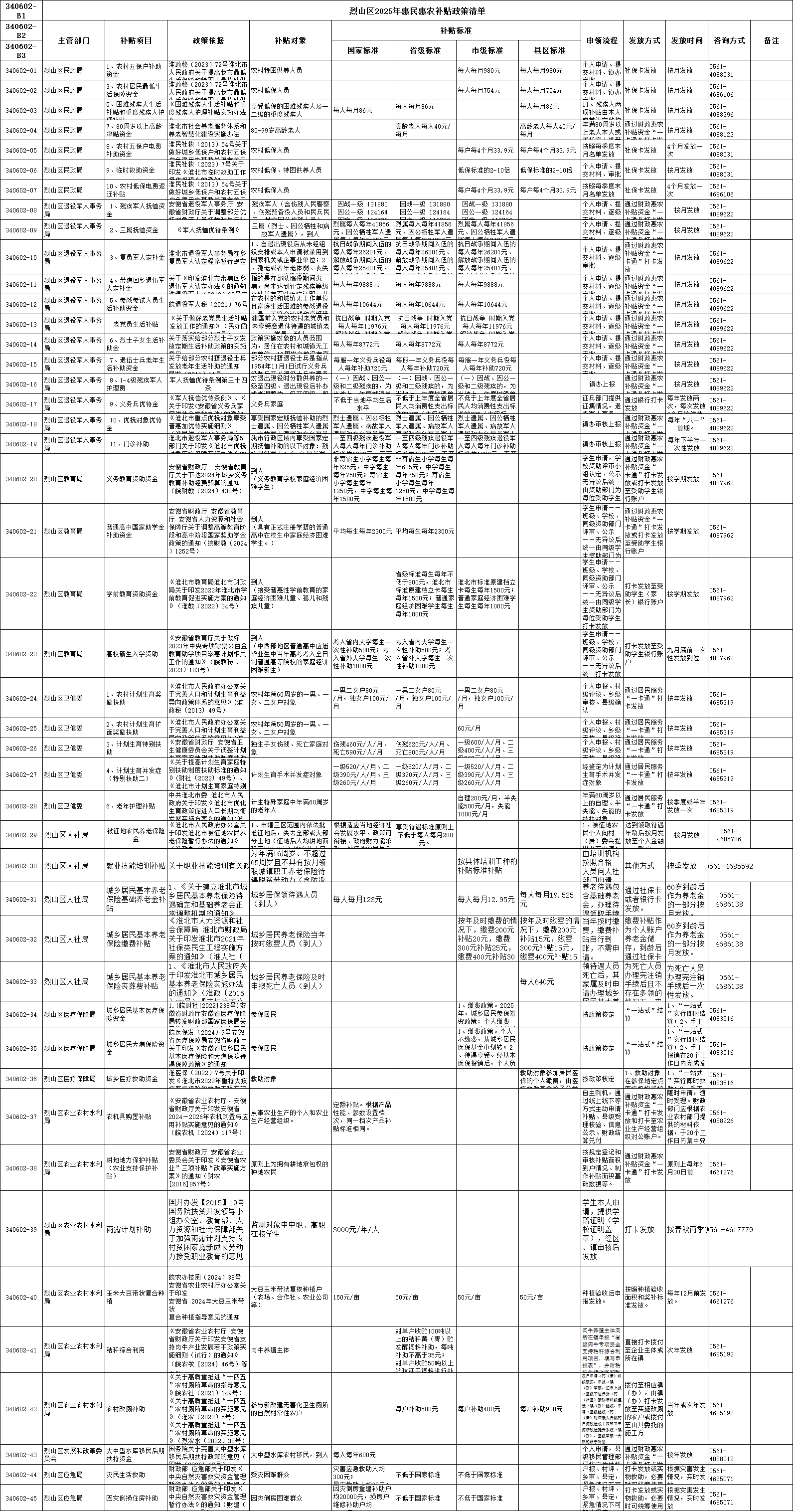 烈山区2025年惠民惠农补贴政策清单