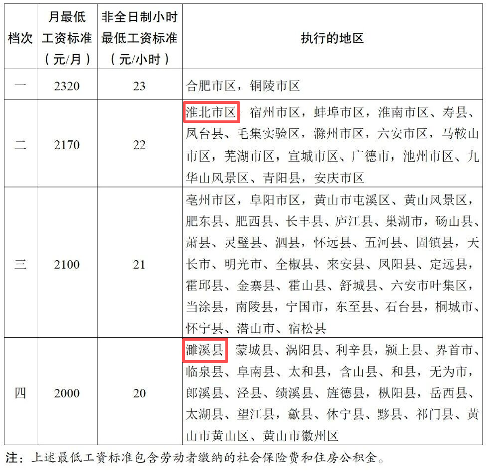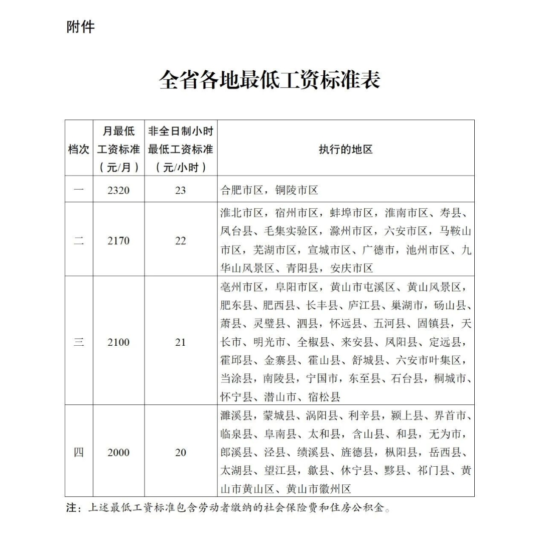 安徽省人民政府办公厅关于调整全省最低工资标准的通知