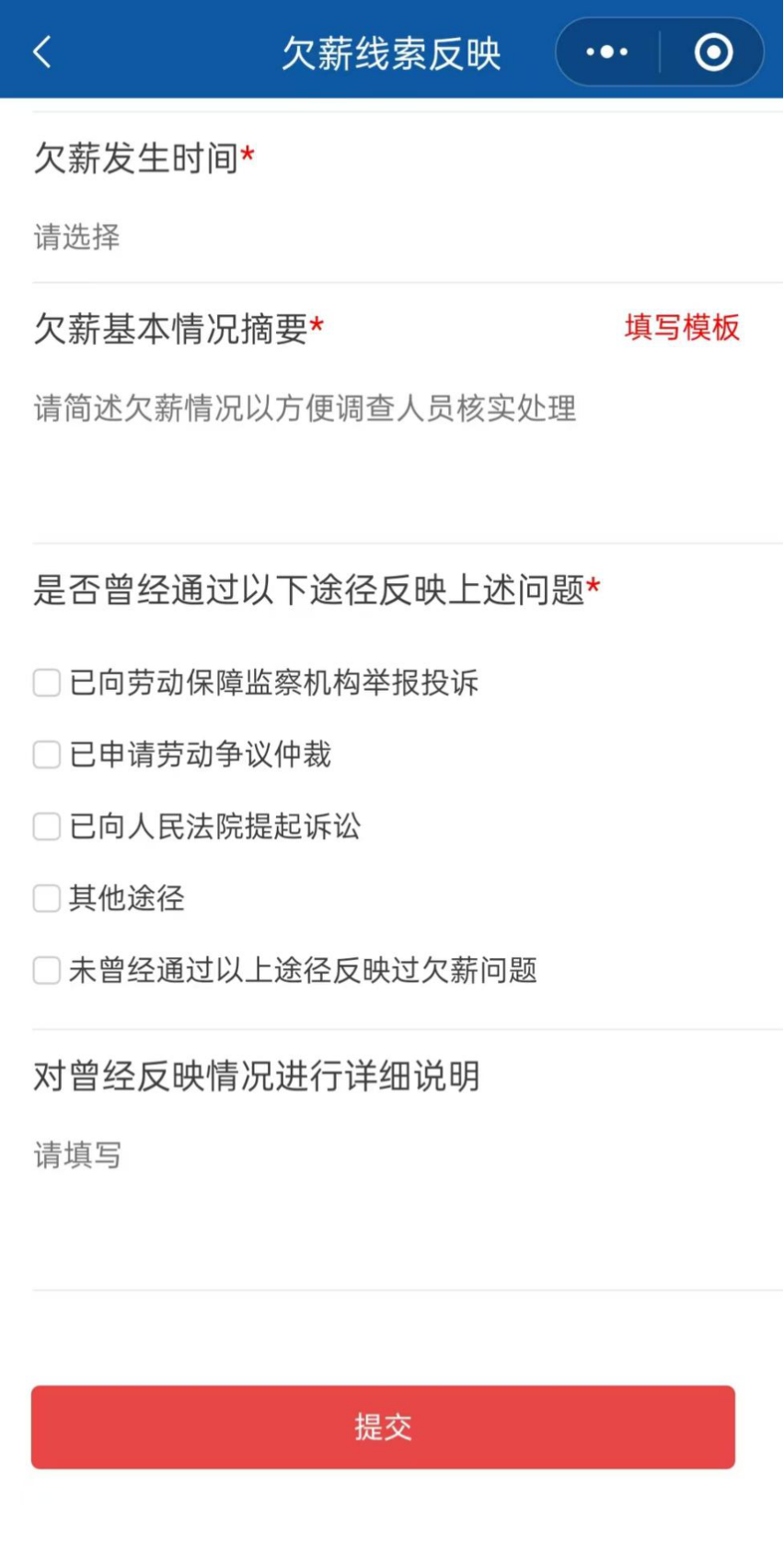 03 按要求填写,拖欠工资单位等必填信息后,点击提交即可。