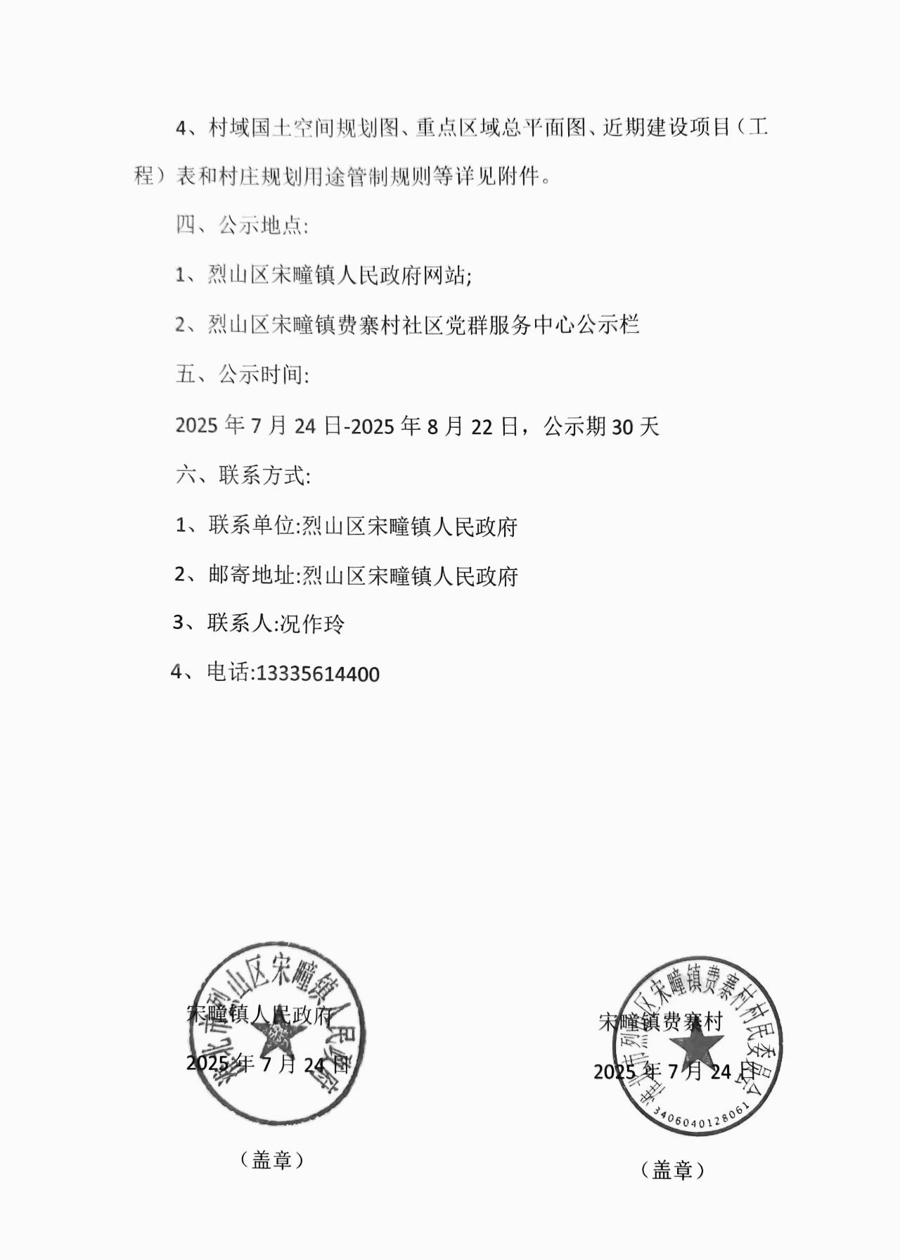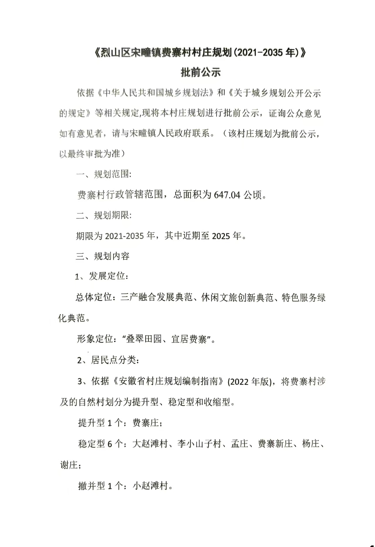 《烈山区宋疃镇费寨村村庄规划(2021-2035年)》批前公示