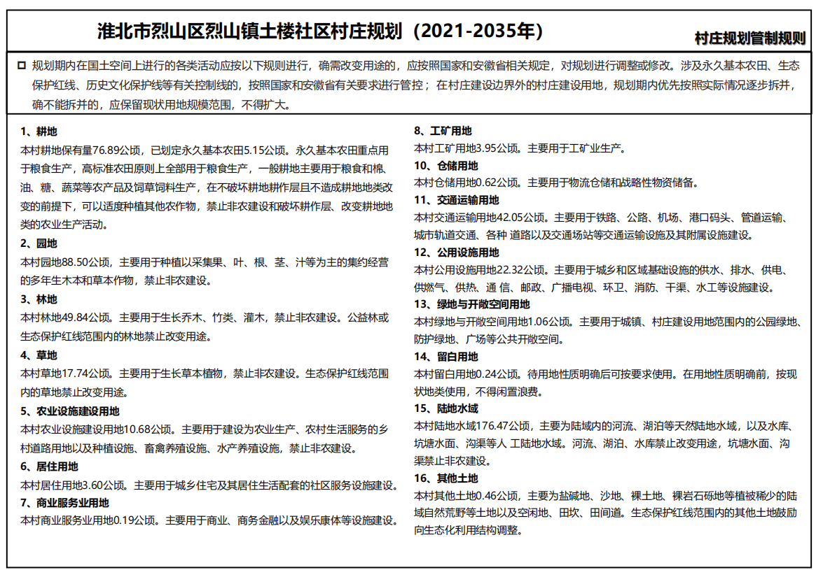 《烈山区烈山镇土楼社区村庄规划(2021-2035年)》主要内容简介: