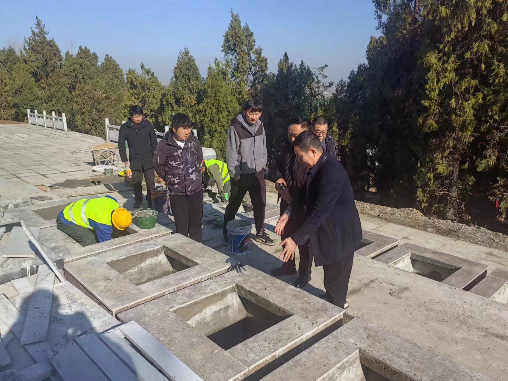 烈山区退役军人事务局局长孔令和带队督察宋疃镇新园村杨山烈士陵园改造提升项目施工现场